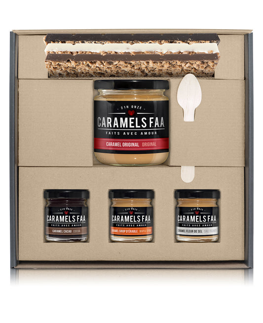 Voici ce que la boîte gourmande – La Classique contient : 1 Tablette Chocolat Lait 1 Caramel...